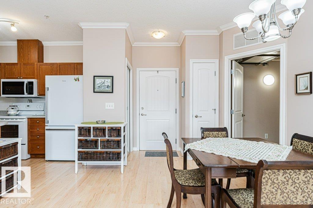 Immaculate and well-maintained 2-bedroom, 2-bathroom condo within the Belcanto Court complex designed for residents aged 45 and over. This property boasts a thoughtfully laid out Open-Concept floor plan comprising a functional kitchen, living and dining area, gas fireplace, and a balcony with Southern exposure, flooding the space with an abundance of natural light. The Primary Suite features a walk-through closet, and a 3-piece ensuite bath, complemented by a secondary bedroom, another full bath, plus in suite laundry. Amenities to enjoy include a social room, convenient guest suite, assigned Heated Underground Parking, and a handy Car Wash. Strategically located near Bonnie Doon Mall, the LRT, and various essential services, this residence offers a blend of comfort, convenience, and is move in ready!
